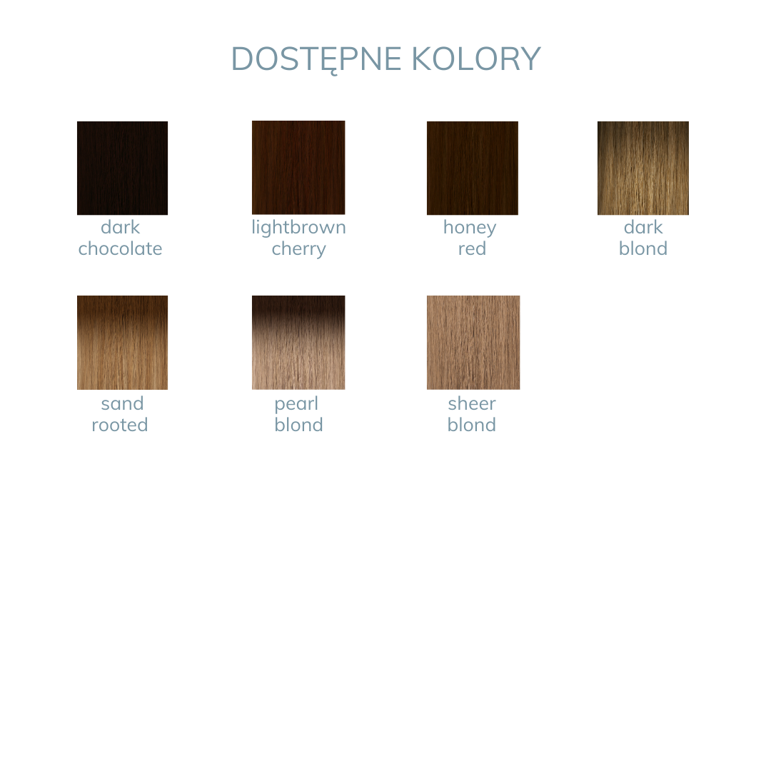 - kolory: 7 wariantów (od ciemnego brązu po jasny blond)