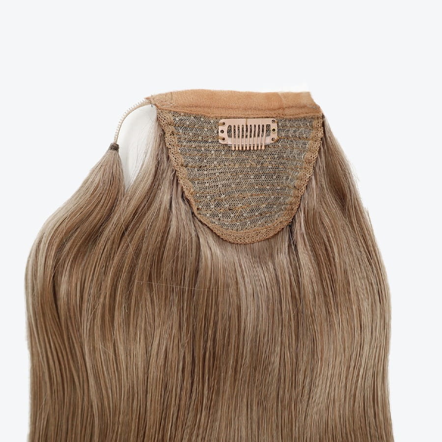 - dodatkowe pasmo przy doczepianym kucyku owiń wokół własnego kucyka aby zasłonić łączenie pomiędzy kucykiem a własnymi włosami