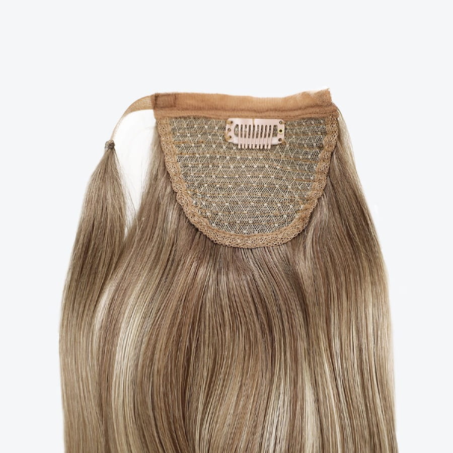 - dodatkowe pasmo przy doczepianym kucyku owiń wokół własnego kucyka aby zasłonić łączenie pomiędzy kucykiem a własnymi włosami