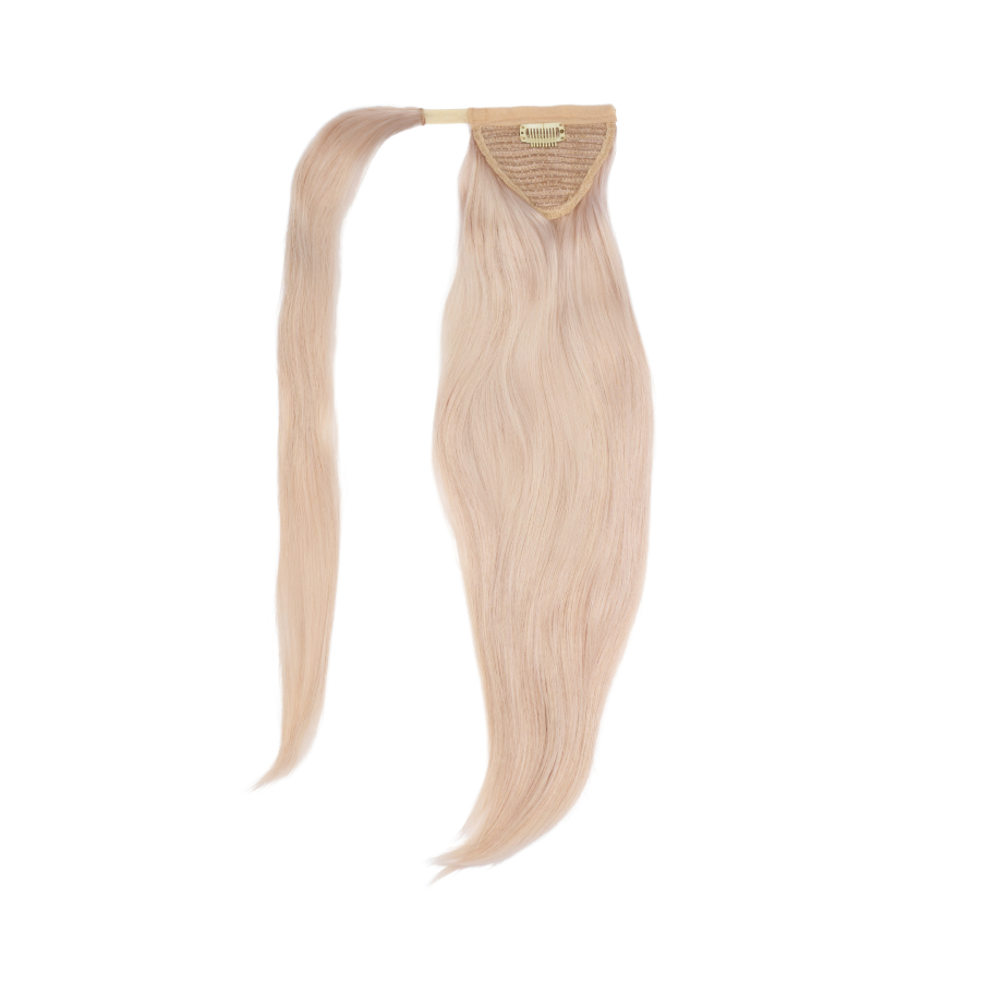 - dodatkowe pasmo przy doczepianym kucyku owiń wokół własnego kucyka aby zasłonić łączenie pomiędzy kucykiem a własnymi włosami