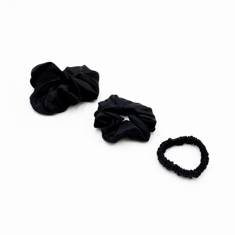 Zestaw trzech jedwabnych gumek do włosów w różnych rozmiarach, skomponowanych z myślą o funkcjonalności i bezpieczeństwie Twoich włosów.